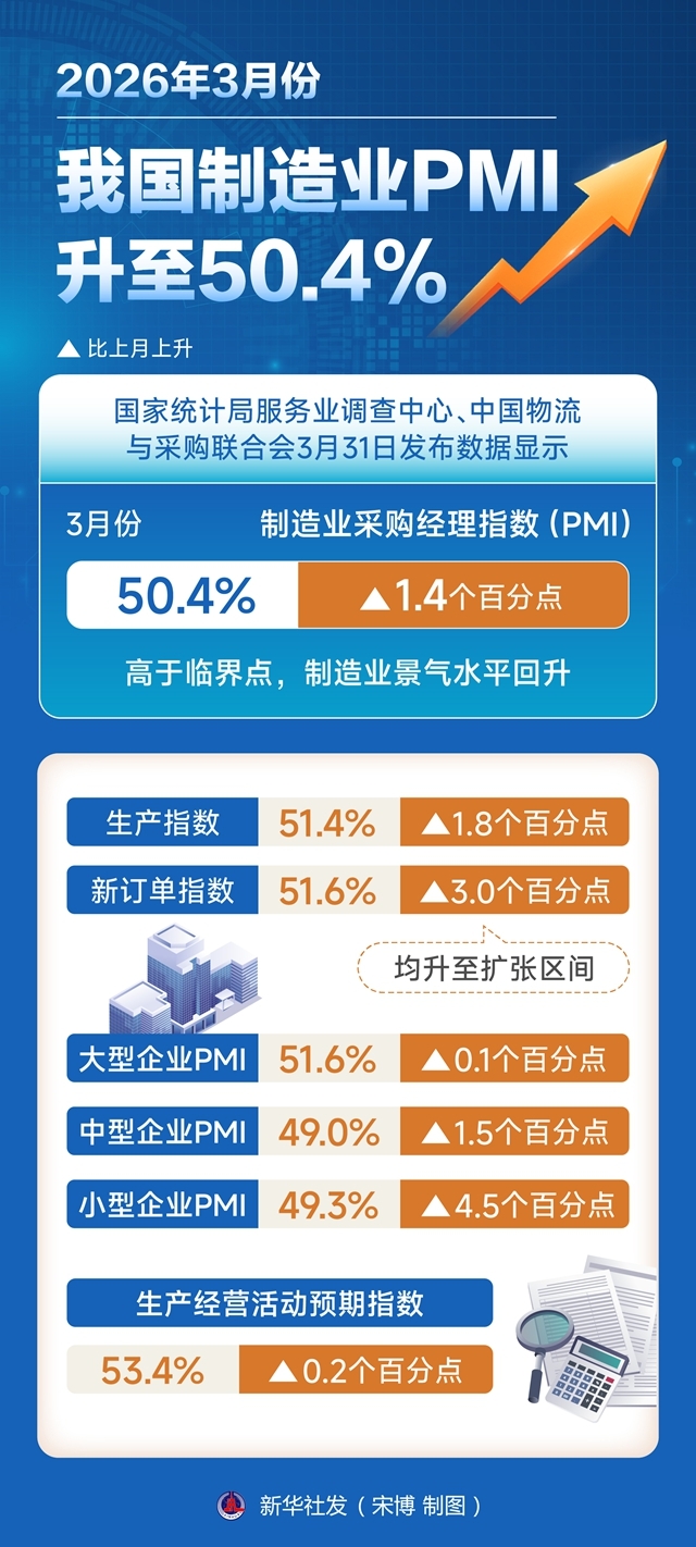 圖表:2026年3月份我國製造業PMI升至50.4%